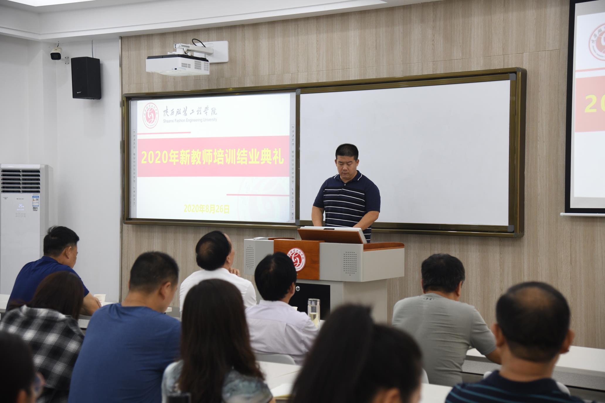 陕服新闻网讯(记者李文斌)2020年8月26日上午九点,我校在B区208智慧教室举行新教师培训结业典礼。校长张义明教授出席结业典礼并作重要讲话;全体新教师、各二级学院领导、党政办领导、宣传部领导、人事处全体工作人员参加毕业典礼。人才办杨军诚主任担任主持人。
