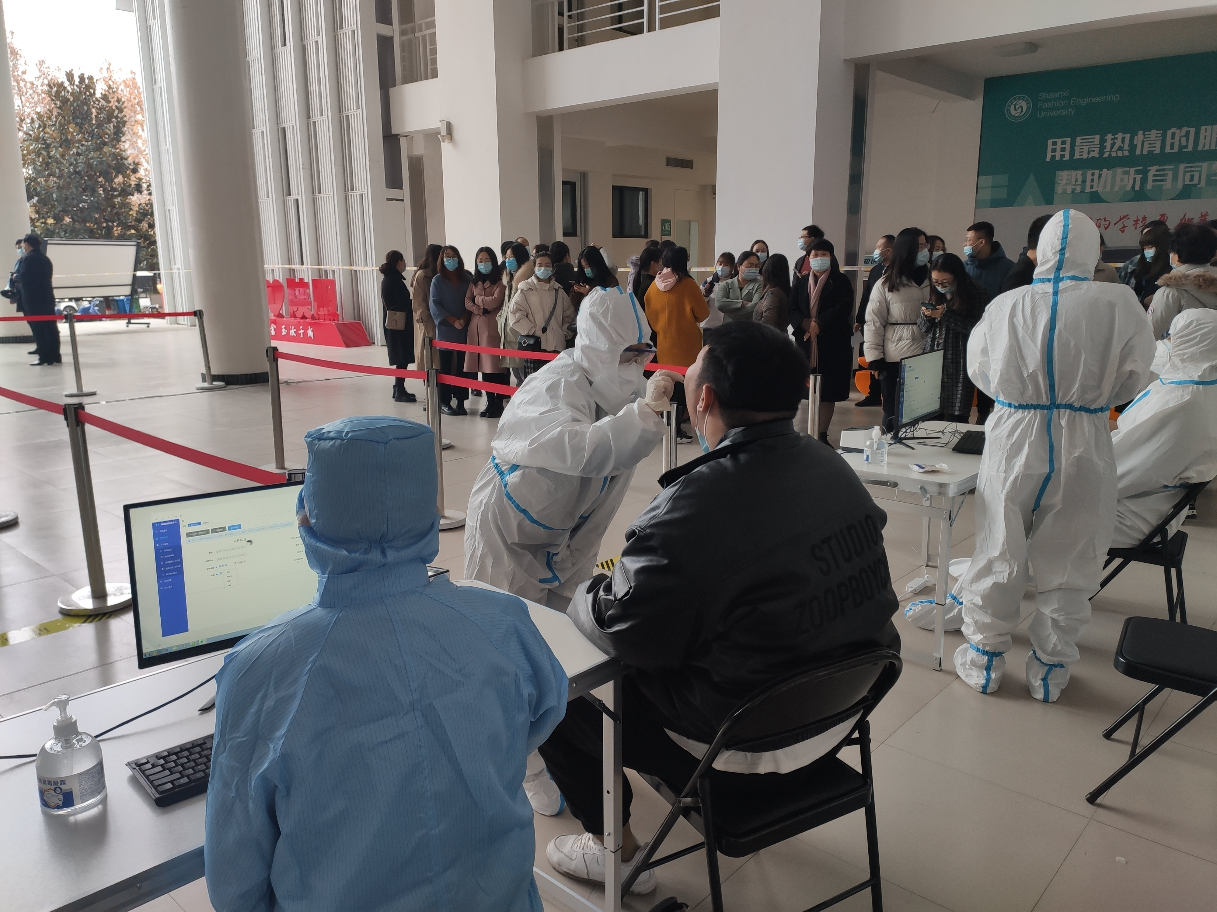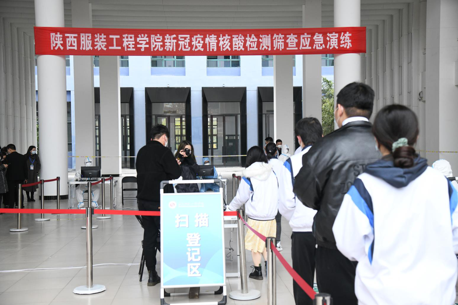 陕服新闻网讯(董良超)11月21日,陕西服装工程学院在教学楼A区大厅举行新冠疫情全员核酸检测应急演练,校长张义明、党委书记温峰、副校长李宗领出席,校长助理、学生处长刘继兵担任现场总指挥,学生处、宣信处、后勤处、保卫处、健康学院、校卫生所等部门组成的学校全员核酸检测工作专班人员、全体辅导员和80名学生志愿者参加了此次演练。