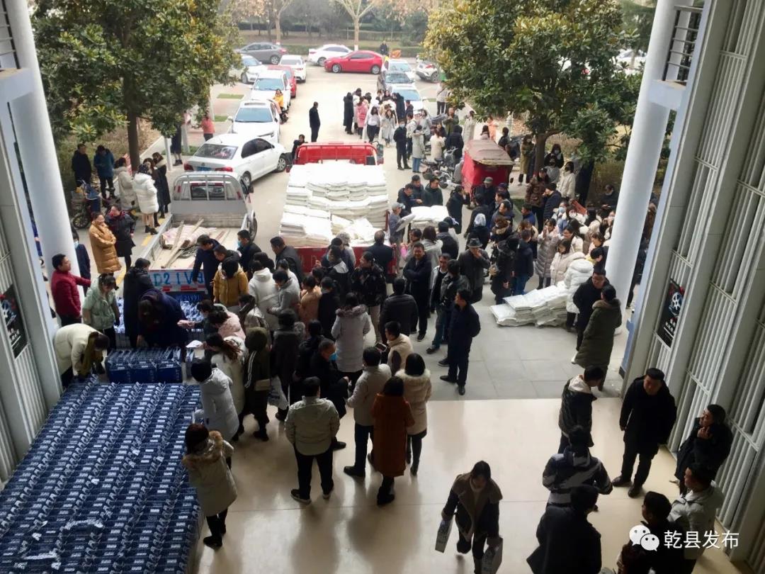 1月4日,乾县与陕西服装工程学院进行结对帮扶,实施“双百工程”,乾县消费扶贫专馆暨宜农电子商务协会组织全县农企对其农副特产——700袋面粉,545盒乾州手工挂面等进行春节进校园配送活动。