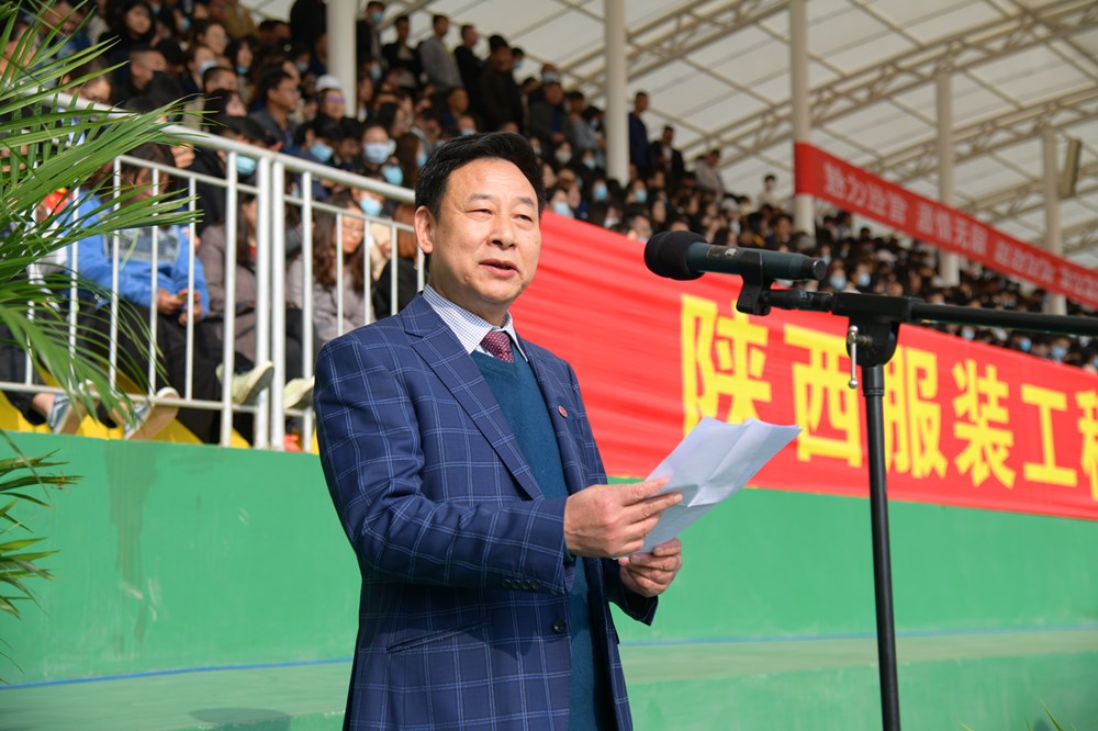 陕西服装工程学院校长张义明教授致开幕辞。张校长代表学校对本届运动会的成功举办表示热烈的祝贺!向筹备这次运动会的全体工作人员表示衷心的感谢!向参加运动会的全体运动员、教练员、裁判员表示诚挚的慰问!