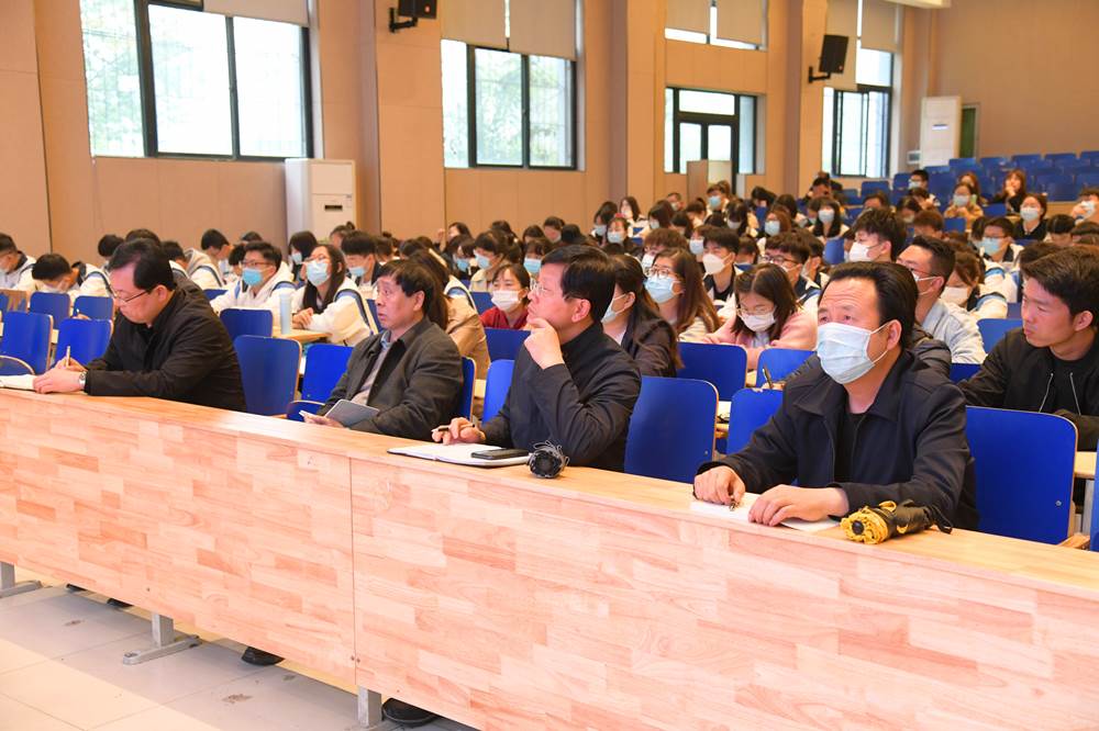 陕服新闻网讯(李文斌)4月20日下午,我校举行首场党史学习教育宣讲会。我校党委宣传部部长、校党史学习教育领导小组办公室主任、宣讲团团长严建会教授在E1-4会议室作党史学习教育宣讲报告。学校党政领导出席报告会,中层以上干部、辅导员代表、学生代表400多人现场聆听报告。校长助理、党委委员、学工部部长、校党史学习教育领导小组办公室副主任、宣讲团副团长刘继兵副教授主持报告会。