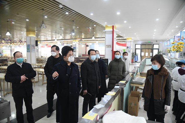 在学校第一餐厅,董事长向一线员工问好并祝贺新年快乐。检查了食品物资储备仓库和操作间,强调一定要想方设法保证师生吃饭问题,并要保证质量。就向沣西地区隔离酒店送餐问题,要求一定要当政治任务做到尽善尽美。