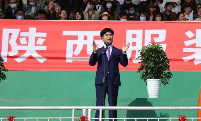 最后,吕明宣布:陕西服装工程学院新媒体技能大赛和第二十二届田径运动会开幕。
