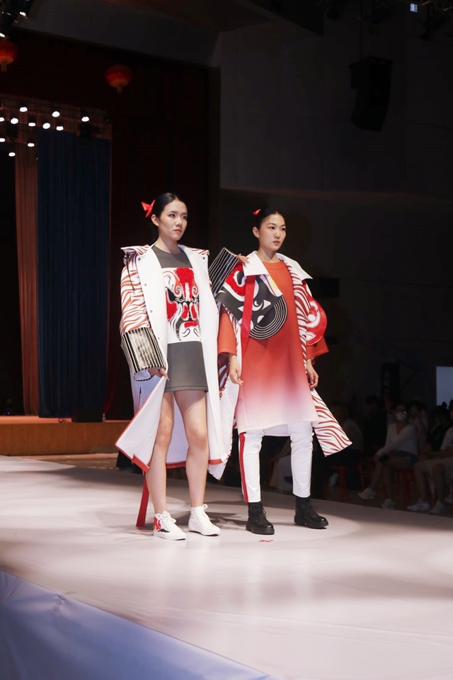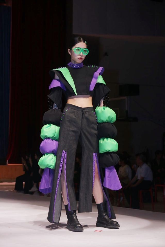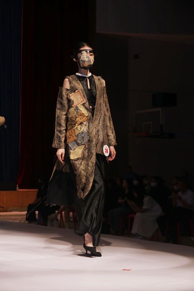 2023届服装专业毕业生的40个系列,160套优秀服装设计作品,分为艺术造型和时尚创意两个组别参加了动态展演大赛。作品糅合了大量的陕西非物质文化遗产:秦腔、剪纸、户县漆画、关中皮影、凤翔泥塑以及陕西秦绣、陕南挑花、草木染、草编技艺等。作品从面料、辅料的选购、款式设计、制版和工艺中充分结合陕西地域特色、民间美术元素和服装时尚概念,融合刺绣、面料肌理再造、数码印花、3D打印等工艺手法,大胆探索与时尚服装艺术创新性融合,让人耳目一新。