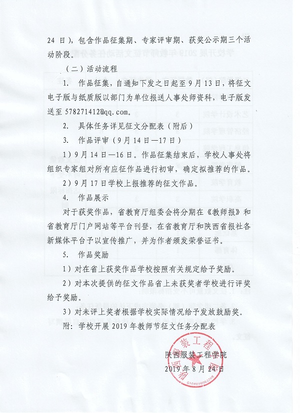 关于我校开展2019年教师节征文活动的通知