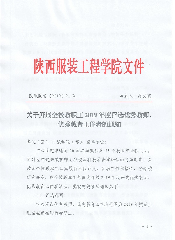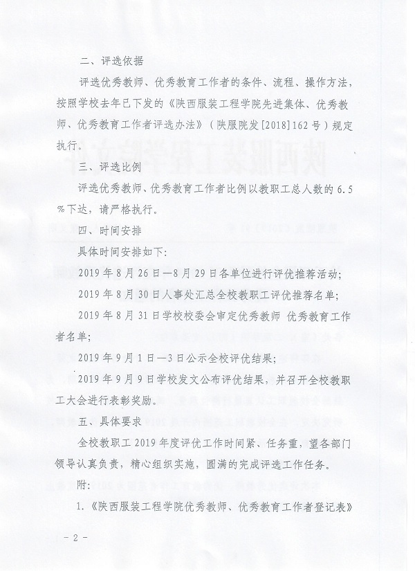 关于开展全校教职工2019年度评选优秀教师优秀教育工作者的通知