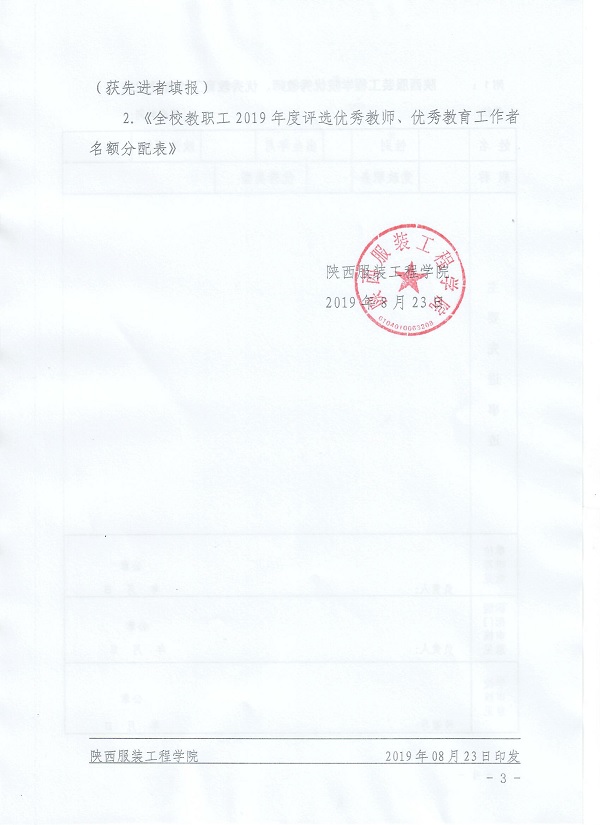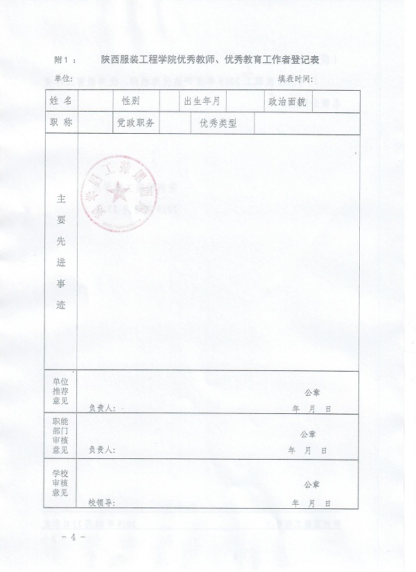 陕西服装工程学院优秀教师、优秀教育工作者登记表