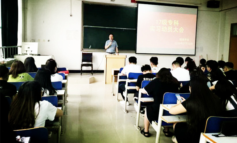 会议由学院主管教学的赫光中院长主持,大会共分为三项议程。首先,由学院分管学生实习工作的实验中心主任王孟老师对学生实习工作做了详细安排。并就实习大纲上的一些具体要求做了详细的讲解,要求同学们在实习期间一定要及时填写实习报告,不得随意请假,要保质保量地完成实习任务。其次,主管学生工作的罗杜娟副院长重点讲了实习纪律要求和安全注意事项,要求每个实习生都要端正实习态度,严格遵守学校和实习单位有关规章制度;要牢记“安全第一”,切实注意人身安全、财产安全及饮食安全;在心态和角色方面尽快作出调整,发扬不怕苦、不怕累的精神,理论联系实际,圆满地完成实习任务。最后,分管教学的赫光中院长作了会议总结。赫院长指出学院历年来重视学生实习实训工作,今年更是加强了对实习单位的开辟工作。开辟的目的就是为了让每个学生通过实习达到理论与实践结合,护理专业的学生更要为迎接2020年全国护士执业资格考试打下夯实的临床基础。赫院长强调每个实习生必须牢记自己的双重身份,在实习期间要以学习为重,积极进取,严格遵守实习单位的相关要求,增强集体荣誉感,为顺利完成实习任务和毕业就业打好基础。