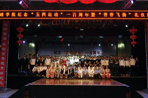 本次活动主要分为三个阶段:第一阶段“五四运动”演讲比赛,六位经过层层选拔的同学在决赛中做了演讲。第二阶段举行了“青春飞扬”礼仪队成立仪式。同学们作了礼仪操展示,礼仪队长作了表态发言。大合唱《隐形的翅膀》使观众感受到了大学的青春与活力。会上还举行了礼仪队聘书颁发仪式。第三阶段是本次活动的颁奖仪式。高职学院20位同学被授予“五四优秀青年”荣誉称号,高职学院葛成老师宣读名单,吕明董事长颁发证书。主持人宣读此次演讲比赛获奖名单,校长张义明为一等奖获得者刘卓岳同学颁奖;副校长李宗领为二等奖获得者李京娟、张萌同学颁奖;学生处处长刘继兵为三等奖获得者张辽、王译德、安孟雪同学颁奖。