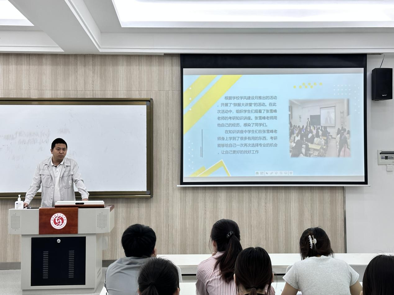 各年级陈述结束后,学工办主任葛林艳老师对此次学风建设月系列活动进行点评,提出表扬和不足之处,并提出了建设性意见。葛林艳老师指出,希望学风建设月活动能真正起到一定的成效,虽活动已经结束,但学风建设是每个辅导员应当持续关注的话题,希望各个年级、各个班级在今后的学习生活中都能按照规划完成相应目标。