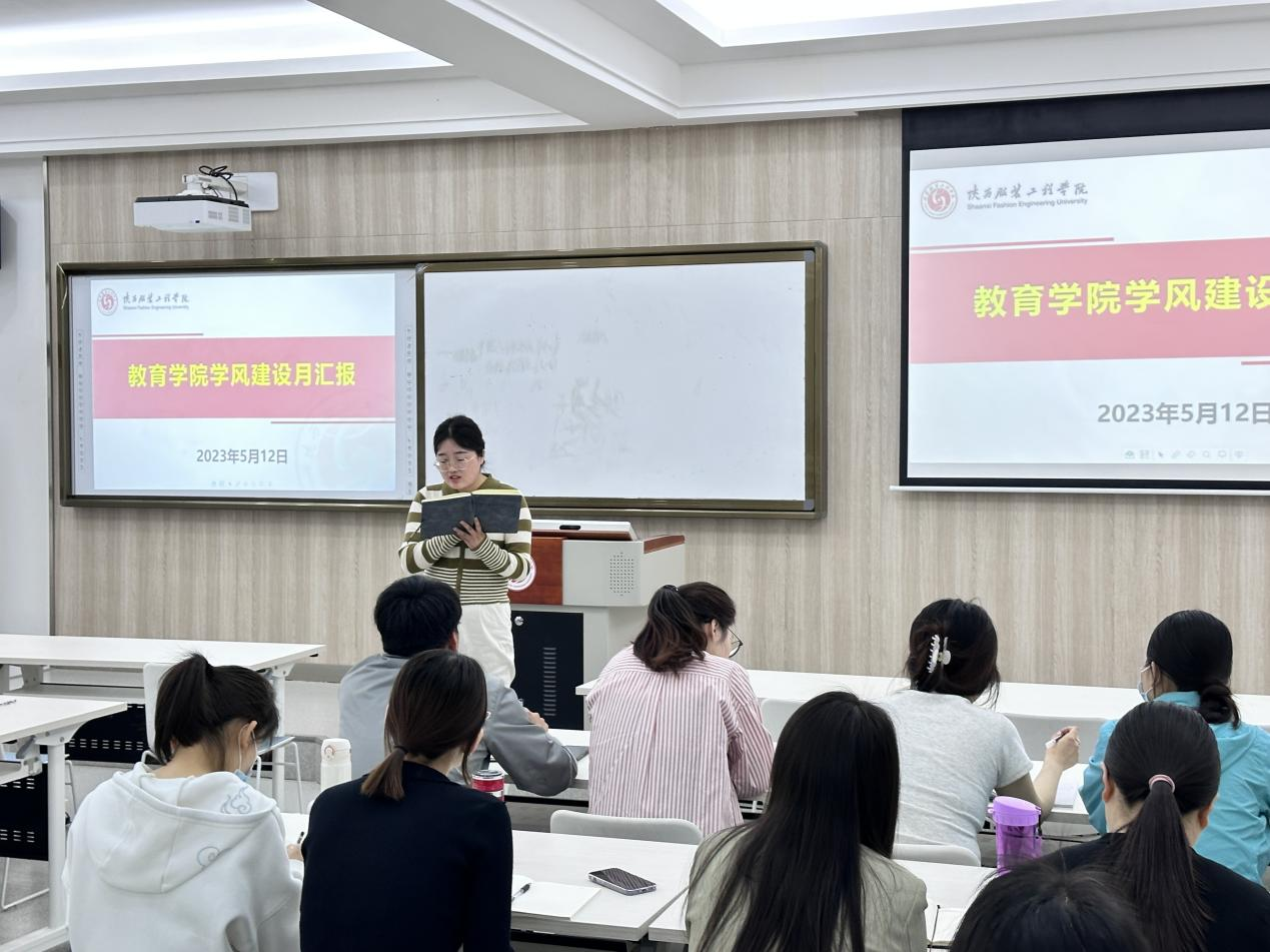(教育学院新闻网讯 崔静)在开展主题教育期间,教育学院为认真学习贯彻党的二十大和全国“两会”精神,落实立德树人根本任务,进一步加强学风建设,督促学生端正学习态度营造严谨勤奋、创先争优的学习氛围,促进学风建设提质增效和学校高质量发展,自4月份以来,开展了以“勤学善思 奋揖者先”为主题的学风建设月系列活动,为此于5月12日在B209组织开展学风建设月阶段性工作总结汇报,教育学院学工办主任葛林艳老师及全体辅导员参加本次会议。