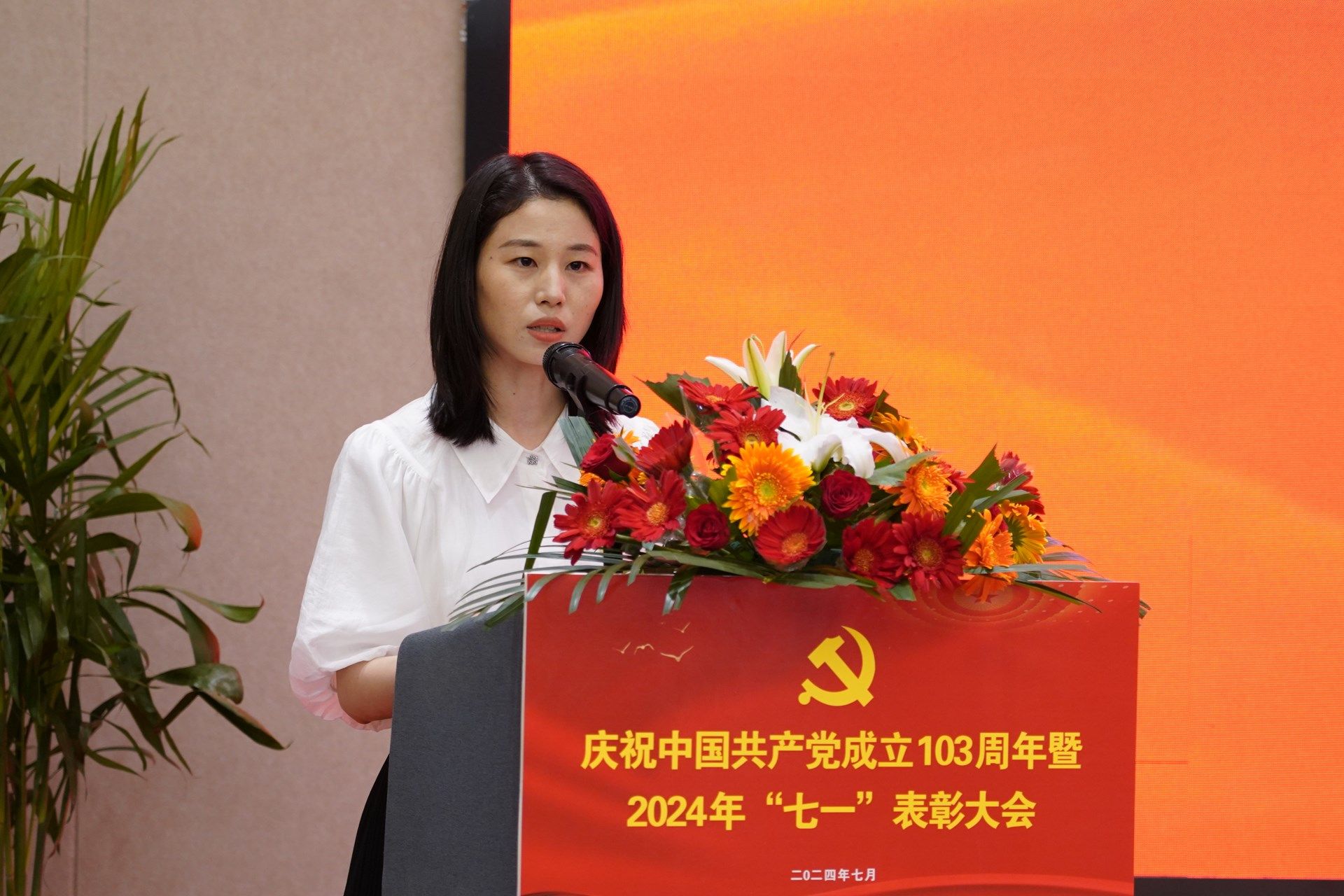 校党委书记王岗发表了讲话。王岗指出,今天是中国共产党103周年华诞,我们在这里举行庆祝中国共产党成立103周年暨2024年“七一”表彰会,表彰为学校发展作出积极贡献的先进基层党组织、优秀共产党员、优秀党务工作者、优秀学生思想政治教育工作者。重温党的光辉历程,缅怀革命先烈丰功伟绩,弘扬伟大建党精神,动员和激励全校党员干部和师生员工坚定信念、践行宗旨、踔厉奋发、团结一心,为推进学校高质量发展再创佳绩!