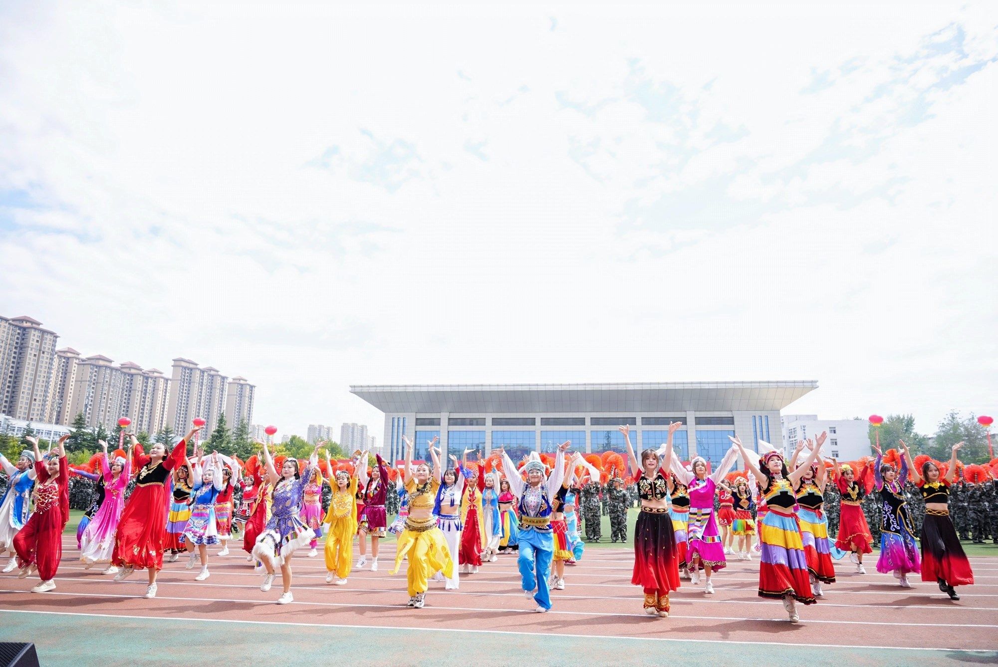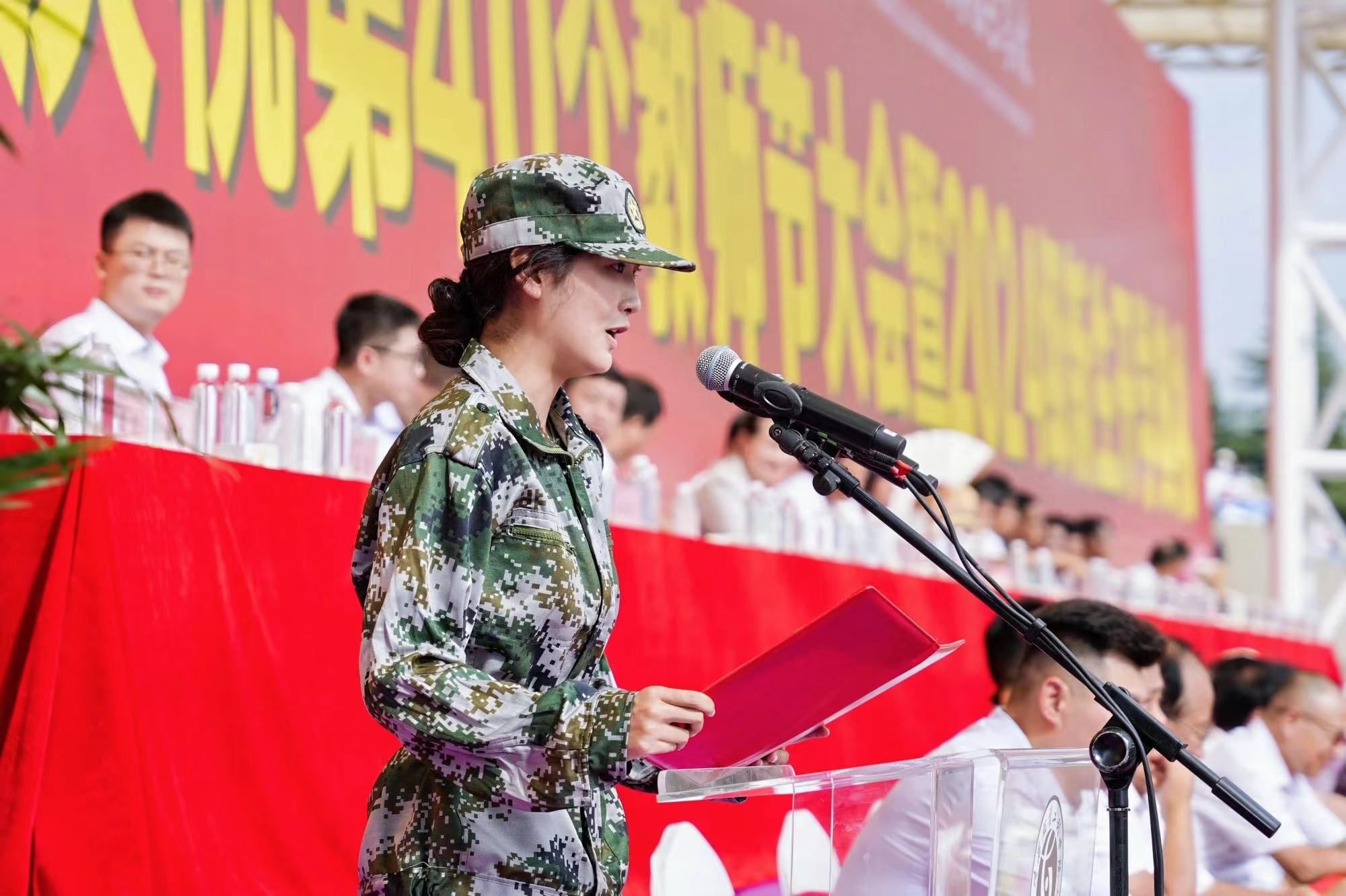 两校5700名新生,在国旗护卫队带领下,依次经过主席台,满身戎装的同学们精神抖擞,目光坚定,步伐整齐,精彩展示赢得全场师生阵阵掌声,随后进行了精彩纷呈的国防教育汇报表演。