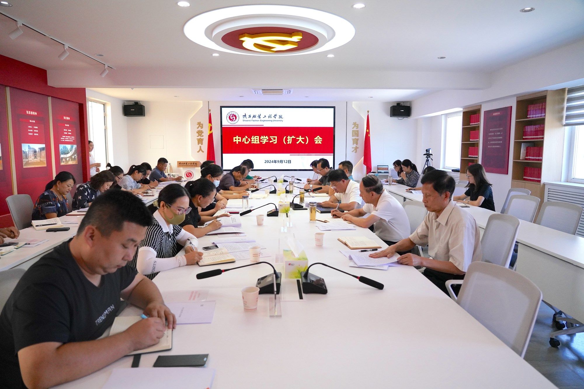 陕服新闻网讯 (菅建伟)9月12日下午,我校召开2024年第7次党委理论学习中心组学习(扩大)会,传达学习习近平总书记在全国教育大会上的重要讲话精神,对学校学习宣传大会精神进行安排部署。全体校领导、党委委员、纪委委员,各院党委(党总支、直属党支部)书记等30余人参加会议。会议由党委书记王岗主持。