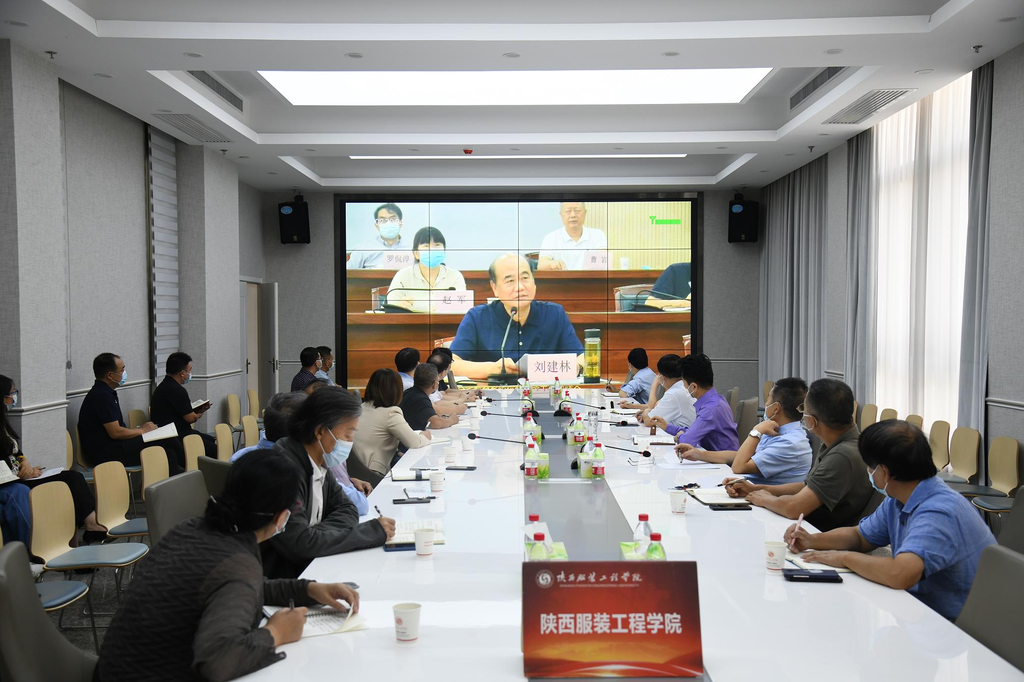 陕服新闻网讯(宣传部)9月13日上午,全省教育系统疫情防控工作视频会议召开,传达上级有关精神,安排部署学校疫情防控及秋季开学工作。省委教育工委、省教育厅领导班子成员和相关部门负责人出席会议。董事长吕明、校长姜寿山、党委书记温锋,副董事长、副校长吕超,常务副校长黄新民,副校长李宗领、吴俊林、唐明晰,校长助理罗文谦、刘继兵,以及各处(室)、二级学院(部)、直属单位负责人在我校分会场-国学院一楼会议室参会。