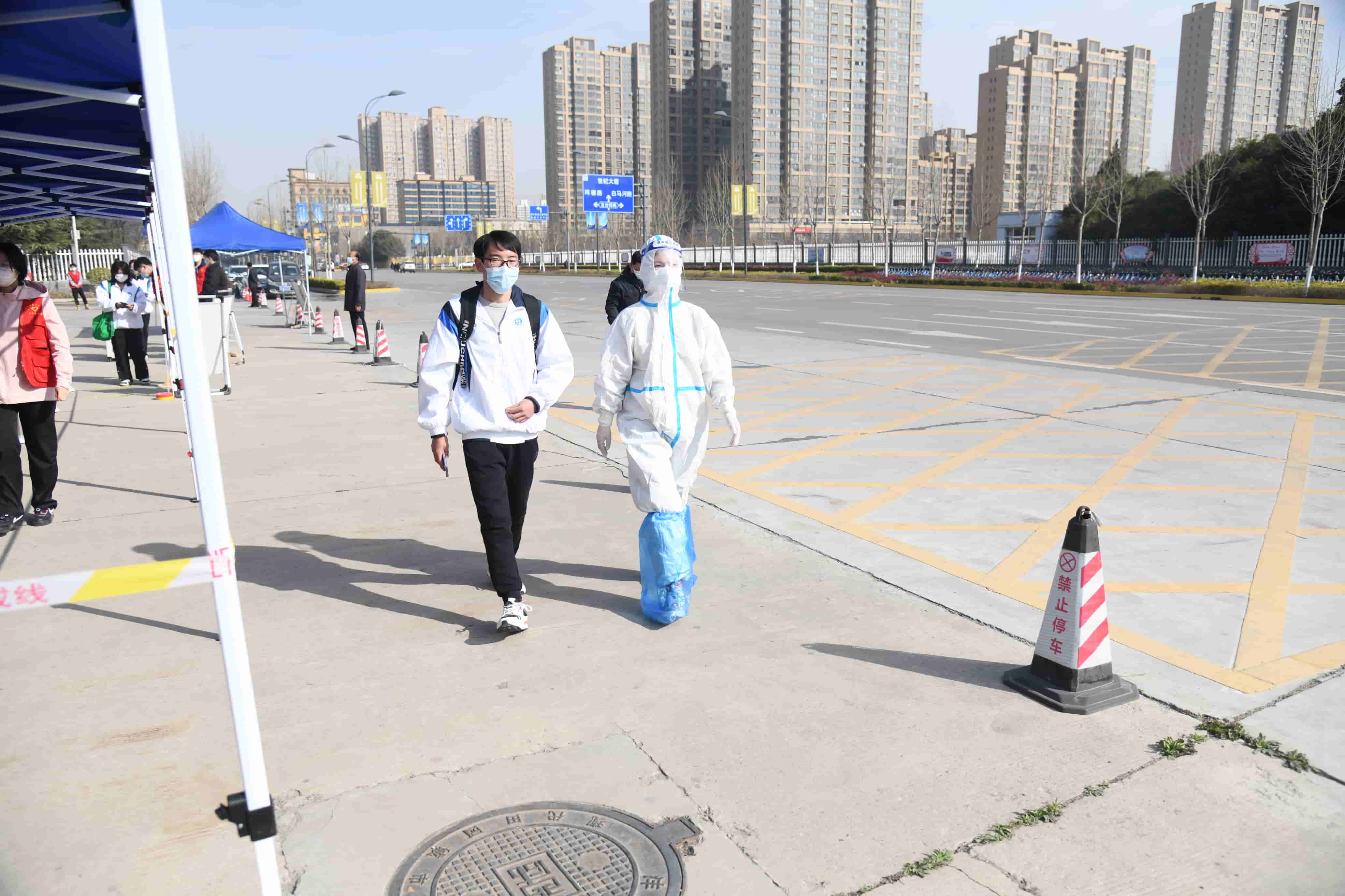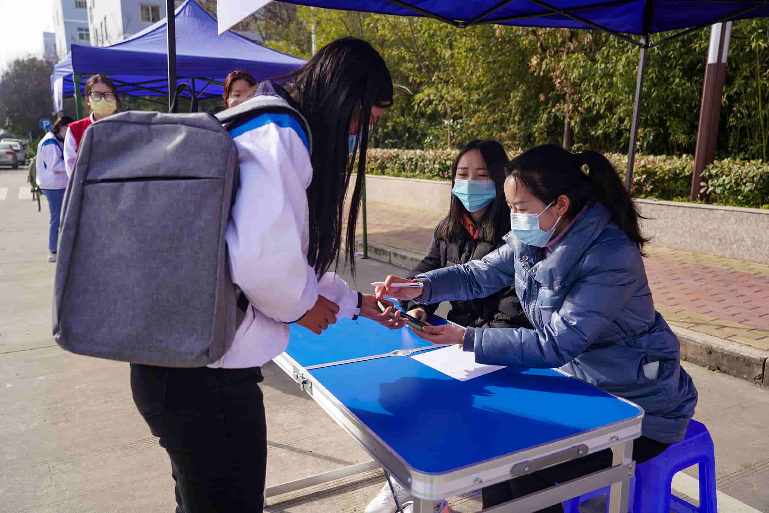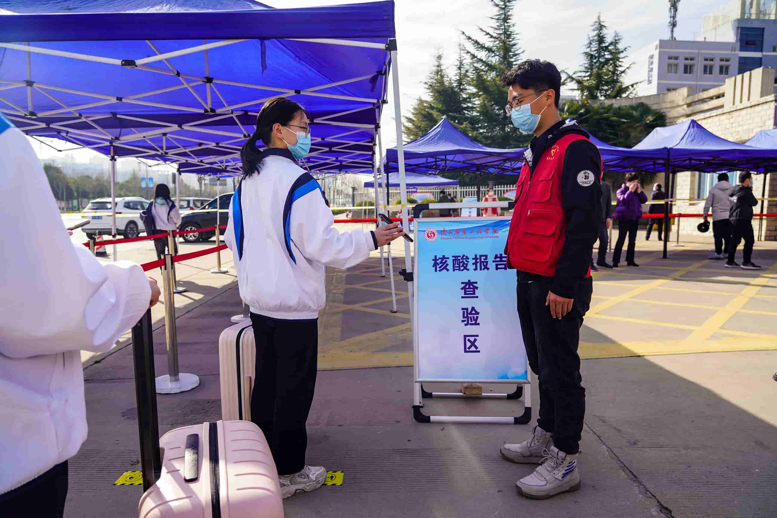 在演练工作组的指挥下,学生志愿者和防疫工作人员密切配合,相继开展了学生“入校报到流程演练”、“食堂就餐演练”、“图书馆学习突发情况应急演练”和学校留观室“异常情况处置演练”四个环节,以情景再现的方式让学生了解掌握返校报到工作流程和疫情防控突发应急处置预案。