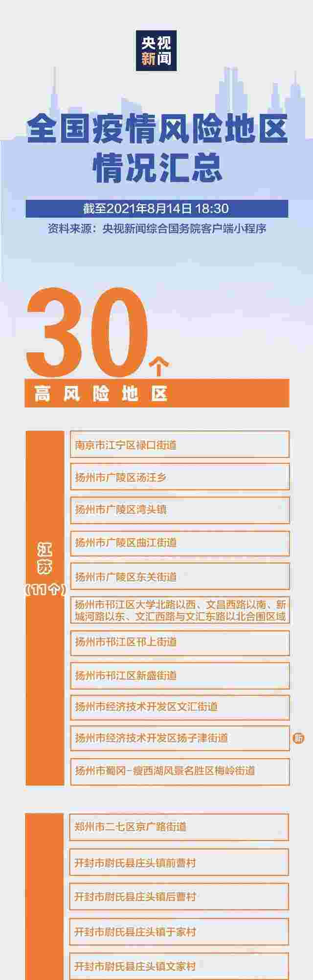 全国共有30个高风险地区