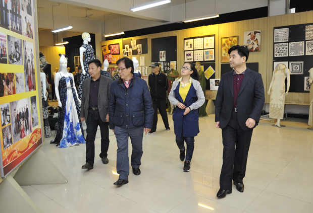 香港理工大学原副校长杨国荣教授一行参观服装艺术学院服装获奖作品展厅