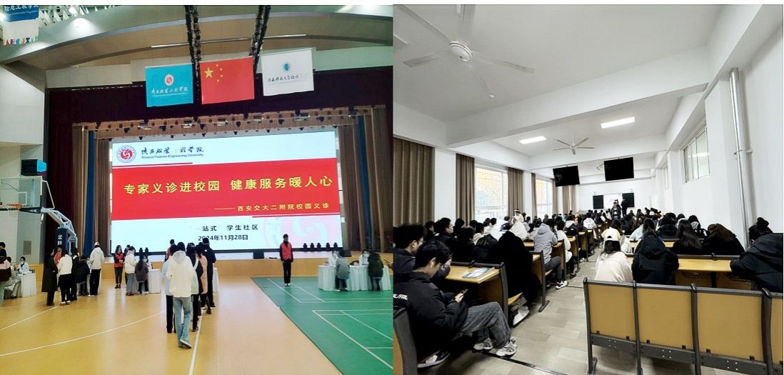 陕服新闻网讯(张维峰)11月28日上午,“专家义诊进校园 健康服务暖人心”活动在校体育馆举行,来自西安交通大学第二附属医院消化内科、乳腺疾病诊疗中心、感染科、内分泌科、神经内科、心血管科、骨科、心理精神科和皮肤科的10名专业医师现场为800余名师生进行义诊。