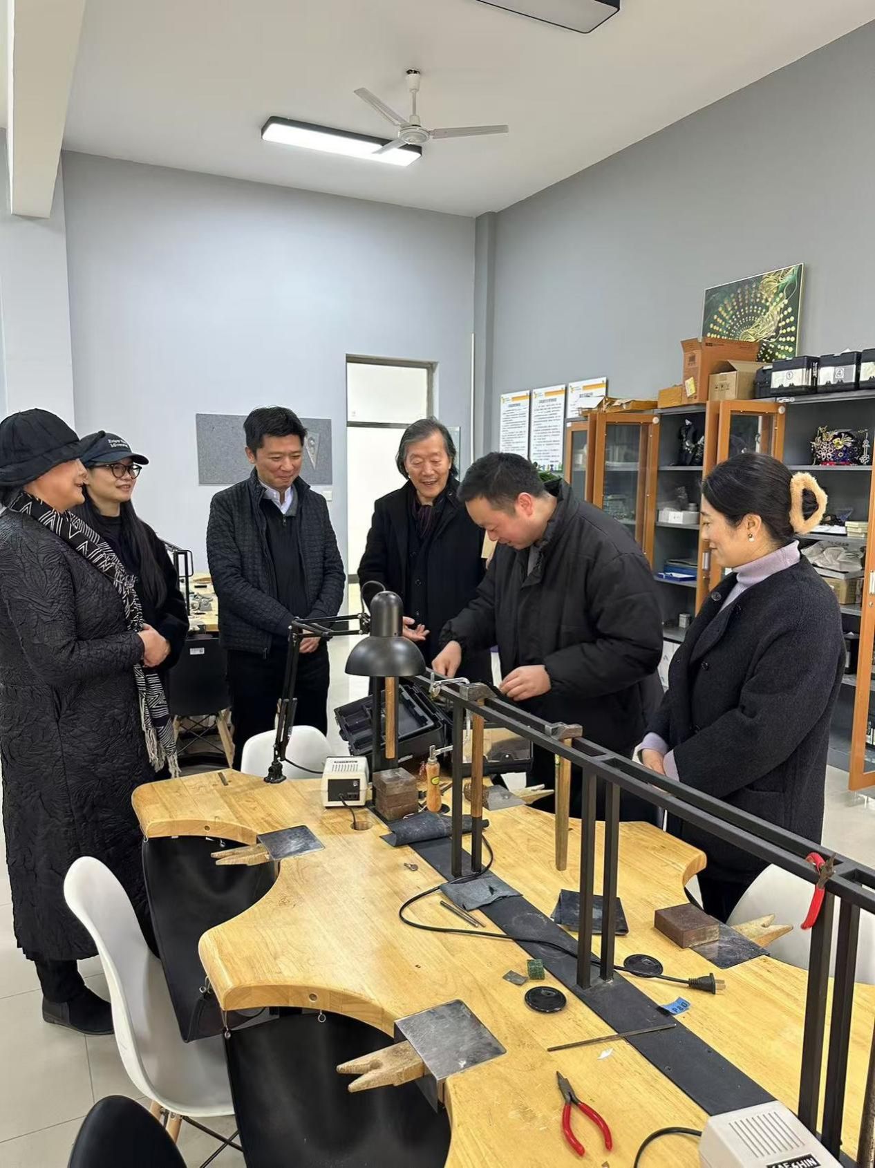 陕服新闻网讯(孔楚楚)11月29日,海南师范大学党委常委、副校长张引一行应邀出席第六届国际创新设计(西安)高峰论坛,并专程访问我校,进行了深入的参观与交流。在艺术设计学院院长吴昊、服装学院院长张莉等陪同下,张引一行细致地参观了服装学院内的珠宝与首饰设计、皮具工艺、摄影技术等数十间专业实验室。