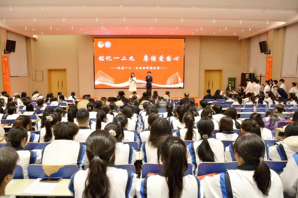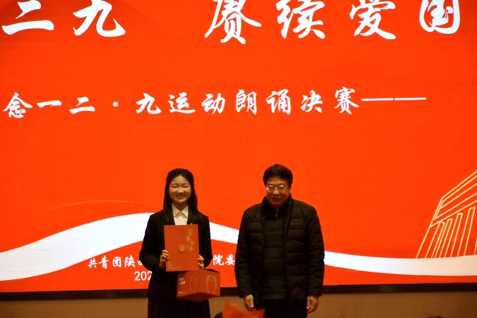 陕服新闻网讯(贾永旺) 为深入学习领会习近平总书记重要讲话精神,增强广大师生的爱国意识,引导青年继承革命传统,弘扬爱国主义精神,纪念“一二·九”运动八十九周年。12月9日晚,“铭记一二九,赓续爱国心”纪念一二·九运动朗诵比赛于E1-4报告厅顺利举行。党委书记王岗,党委副书记、纪委书记刘继兵以及各二级学院党委(党总支)副书记,团委书记、副书记出席活动。