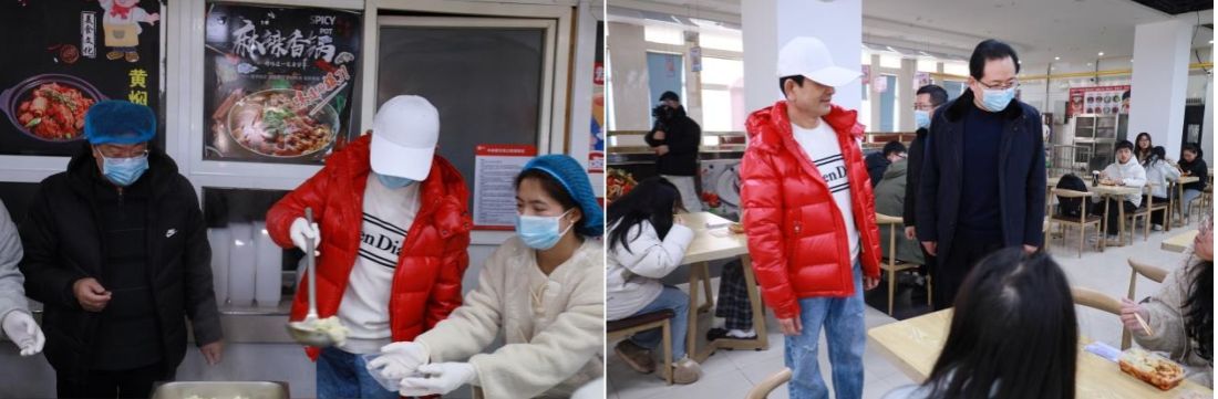 餐厅内张灯结彩,喜气洋洋。师生们满心欢喜,热情高涨,校领导与同学们边包饺子边话家常,不时询问大家在学校的学习和生活情况,关怀的话语让师生们倍感亲切。现场气氛其乐融融,到处洋溢着“家”的味道和“家”的温暖。