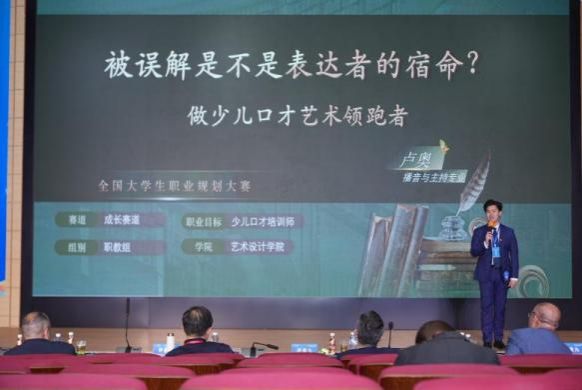艺术设计学院卢奥同学从对语言艺术教育的深度思考出发,以"少儿口才艺术培训师"作为职业发展目标,帮助少儿构建精准清晰的逻辑思维与艺术表达能力,彰显了新时代教育工作者在少儿核心素养培育领域的创新突破,践行了"用语言艺术为成长赋能"的教育使命;最终获职教组成长赛道银奖。