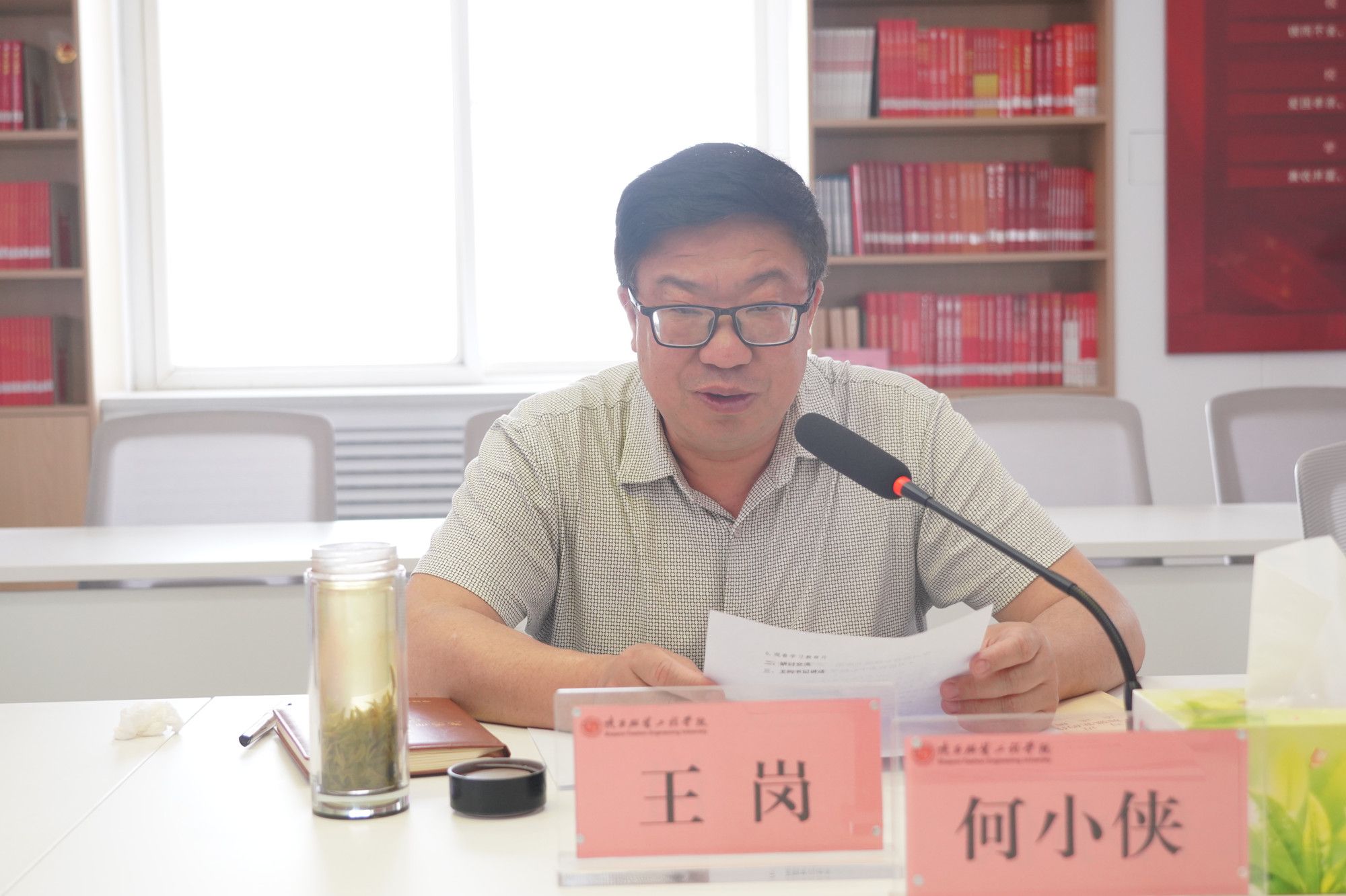 陕服新闻网讯(李文斌)4月22日,学校召开深入贯彻中央八项规定精神学习教育专题读书班第二次学习暨党委理论学习中心组2025年第四次学习会议,把读书班和研讨问题相结合,通过集中学习、观看警示教育片、深入研讨等形式,一体推进学查改, 确保学习教育落地落实。校级领导、党委委员、纪委委员、党政办主任、人事处处长、马克思主义学院院长、各二级学院党委书记、各党总支书记、机关各支部书记参加学习。党委书记王岗主持会议。