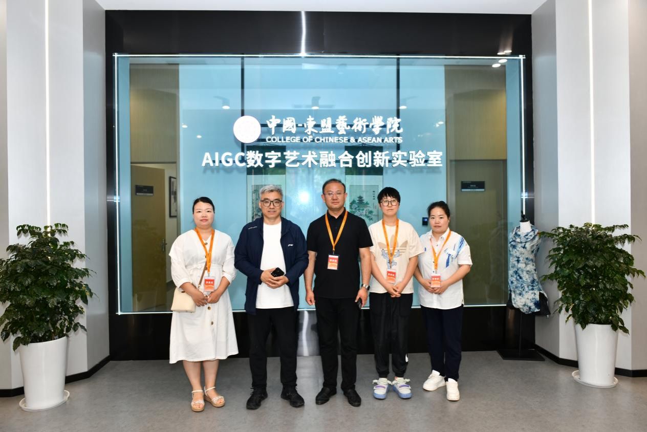 时晓楠一行参观了成都大学AIGC数字艺术融合创新实验室,并与相关负责人就专业数字化转型发展、课程体系构建、AIGC智能化教学等有关问题进行了深入交流。