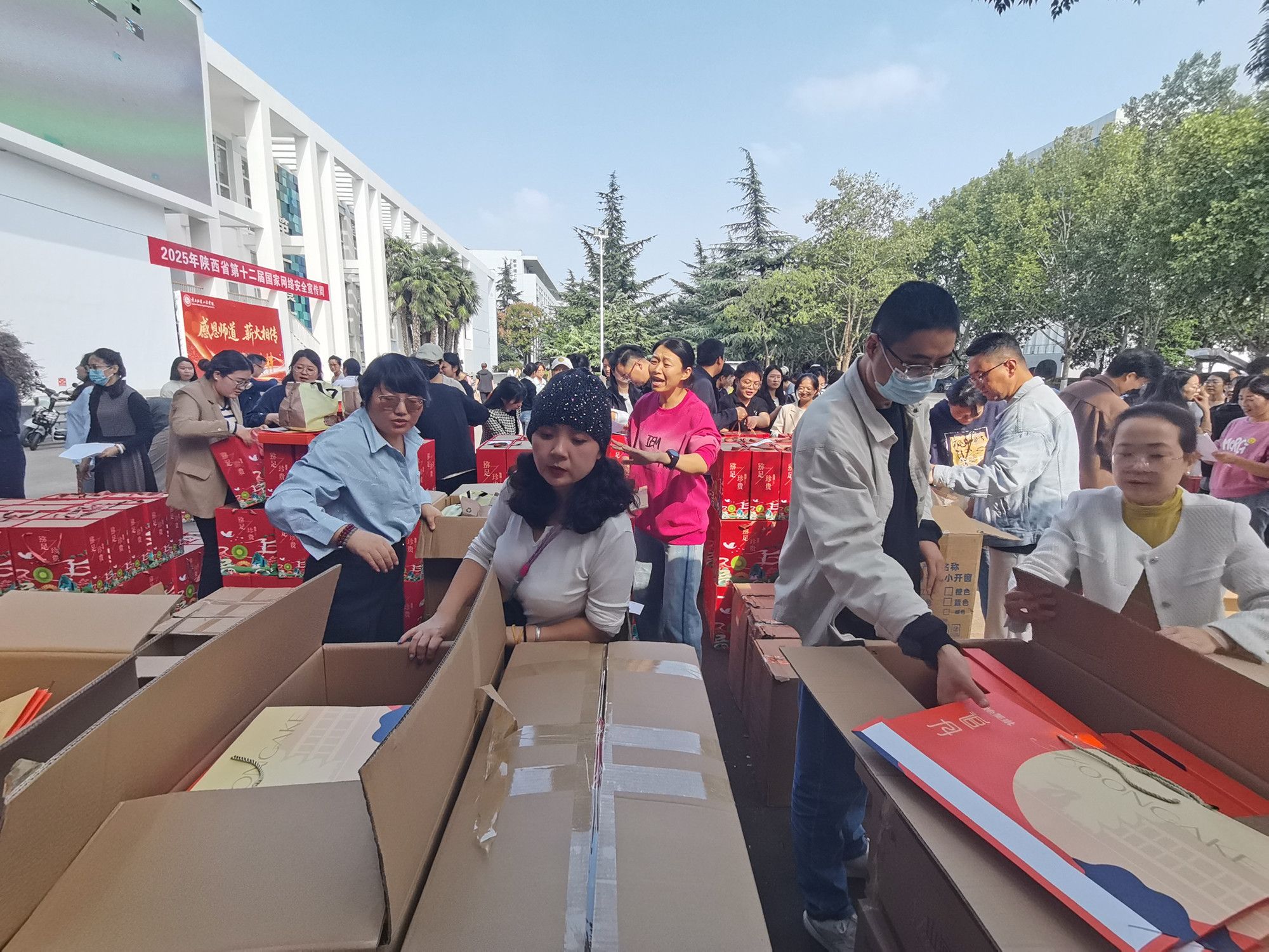 陕服新闻网讯(李文斌)9月25日,校工会给全体工会会员发放了2025年国庆节、中秋节慰问品,将学校的关心与厚爱送至每位教职工,并为广大教职工送上美好祝福。