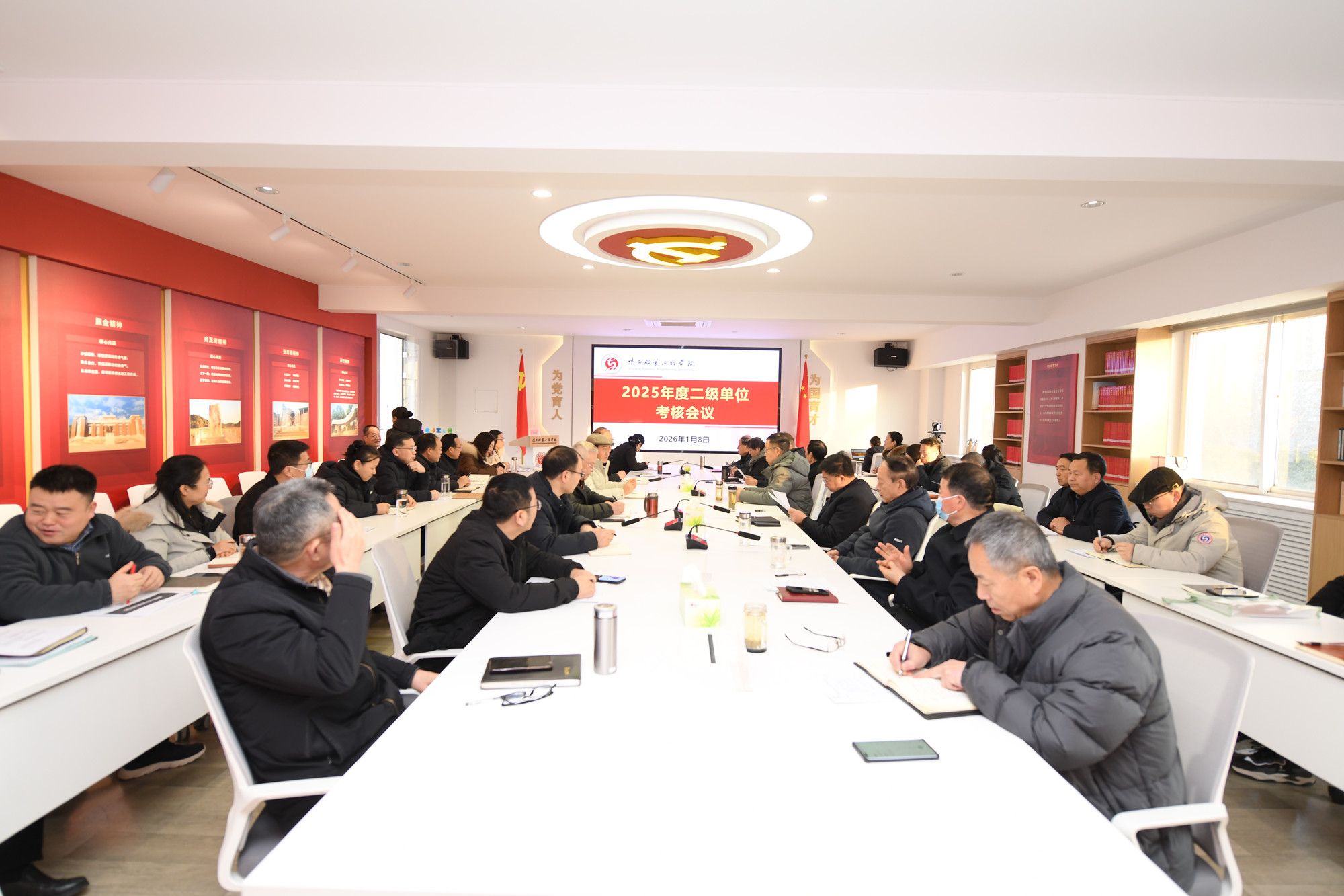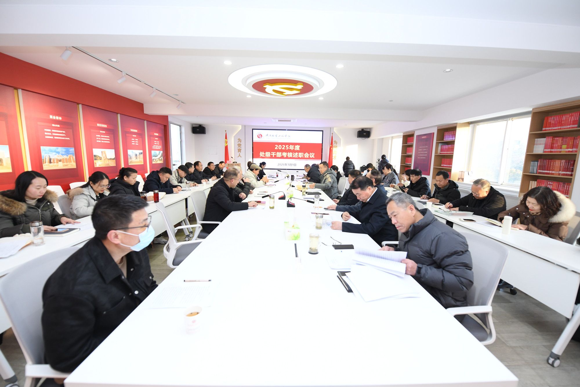 陕服新闻网讯(李文斌)1月8日至1月9日,学校在行政楼326会议室召开2025年度述职考核会议,充分盘点2025年工作,总结成绩经验,查找问题不足,交流做法、互学互鉴,为谋划明年工作奠定基础。校长姜寿山、党委书记王岗及学校考核工作领导小组成员出席会议。各二级学院(部)及职能教辅部门主要负责人等参加会议。