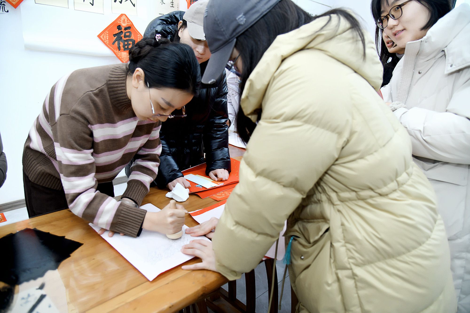 陕服新闻网讯(李文斌)1月21日,校工会、艺术设计学院在校书法室举办“寻味中国年 非遗贺新春”2026丙午马年写春联活动。