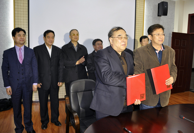 西安工程大学校长高勇、陕西服装工程学院院长王鹏飞代表两院校签订帮扶协议