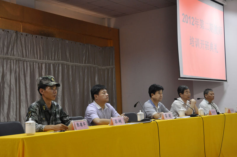 2012年8月20日上午,我院2012年第二批教师培训开班典礼在国学院五楼报告厅隆重开幕,吕明董事长,张进平书记,吕超副院长,刘明夫副书记,服装研究所汤子峰所长等院领导和西安民兵训练基地张德华教官出席了开班仪式。学院一直非常重视对老师队伍的培训和团队建设,这次培训,学院精心设计了内容丰富,形式新颖的课程,效果显著,给老师带来更好、更深刻的体会,对提高老师的工作质量发挥了一定的作用。