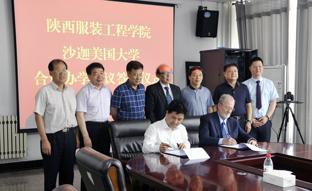 陕西服装工程学院董事长吕明和沙迦美国大学校长包世伟签订合作办学协议书