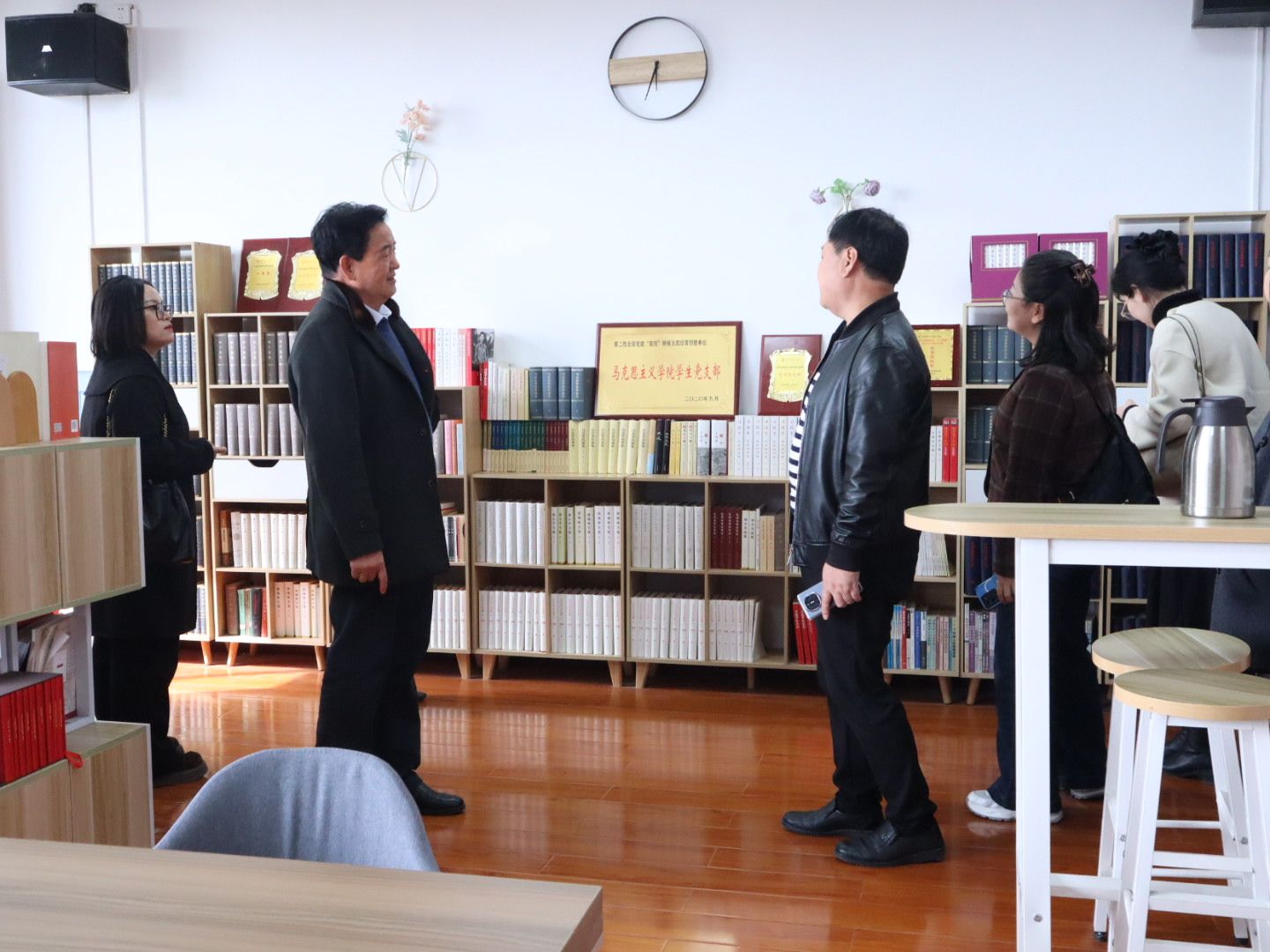 座谈结束后,在陕西理工大学马克思主义学院相关负责人的陪同下,我校交流团先后实地参观了学院教学技能训练室、教学训练录播室、数智能力提升室、思政课教学创新研讨室,现场观摩学院在教学硬件设施建设、教学教研平台打造、思政课教学创新支撑等方面的具体举措,详细了解各功能室的建设理念、运行模式和使用成效,为自身教学教研平台建设积累了实用经验。
